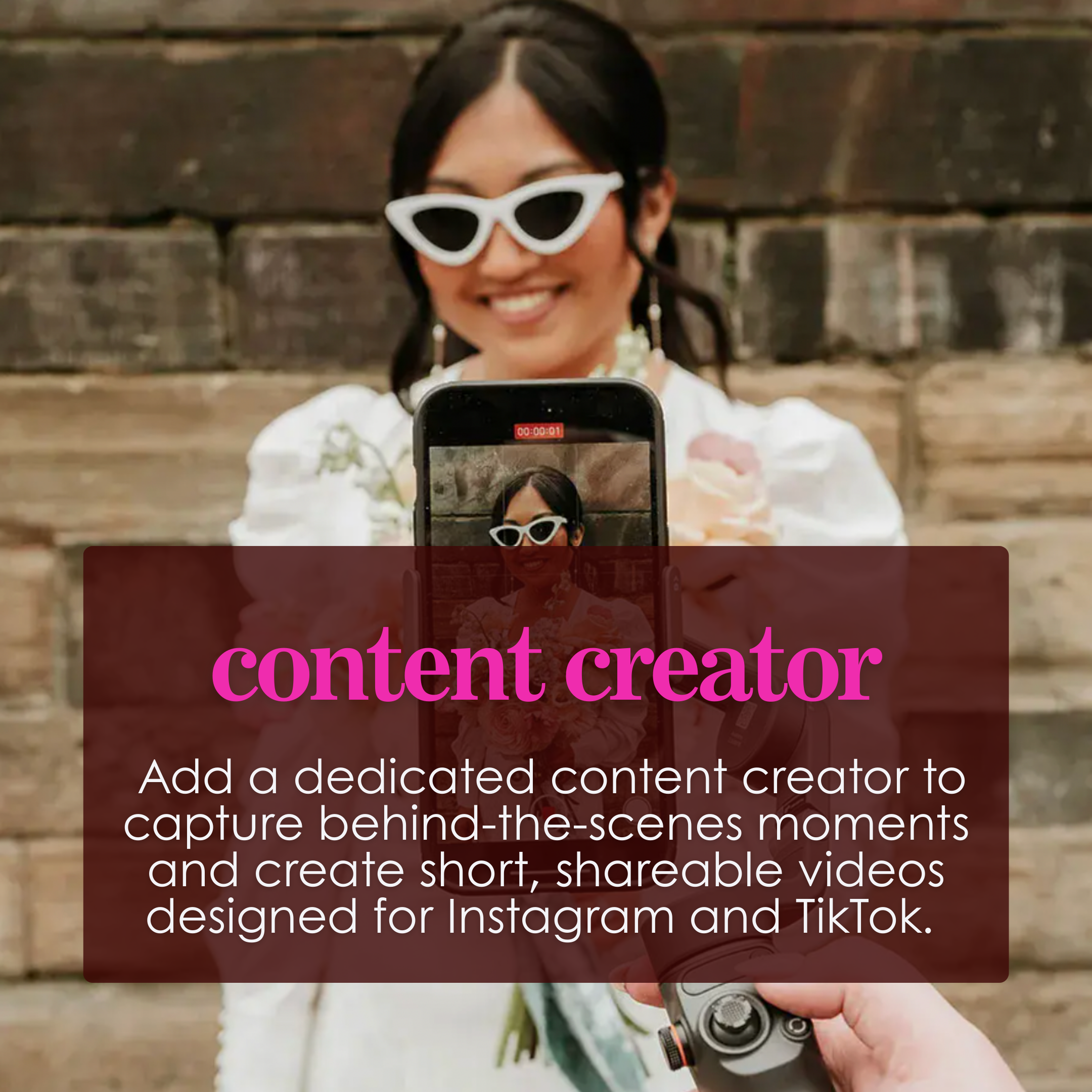We don’t do packages. A Cakewalk has everything you need for a super chill wedding day.